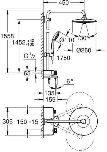 Душевая система поворотная с термостатом с изливом Grohe SmartControl хром (26510000)