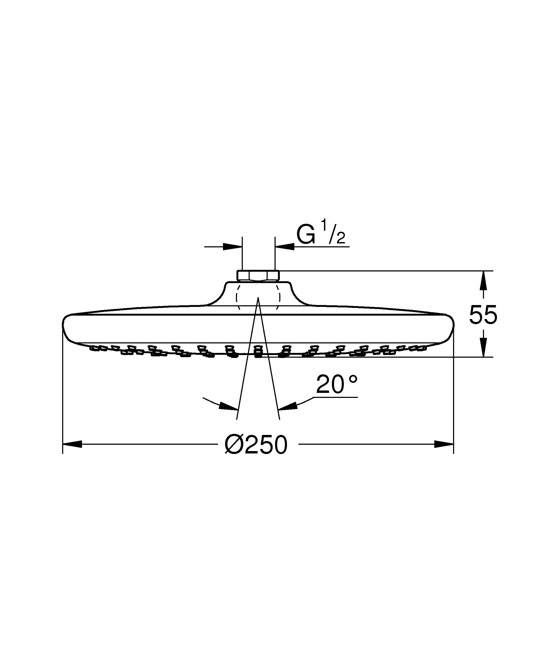 Размер душевой лейки:250 мм