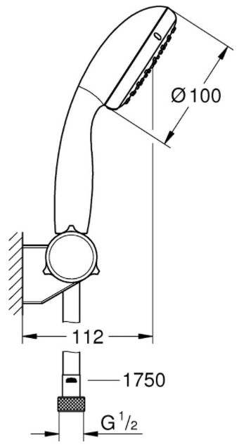 Душевой набор Grohe Tempesta New 100 (круглый ручной душ, настенный держатель, шланг 1750 мм), 5,7 л/мин, хром 2760110E