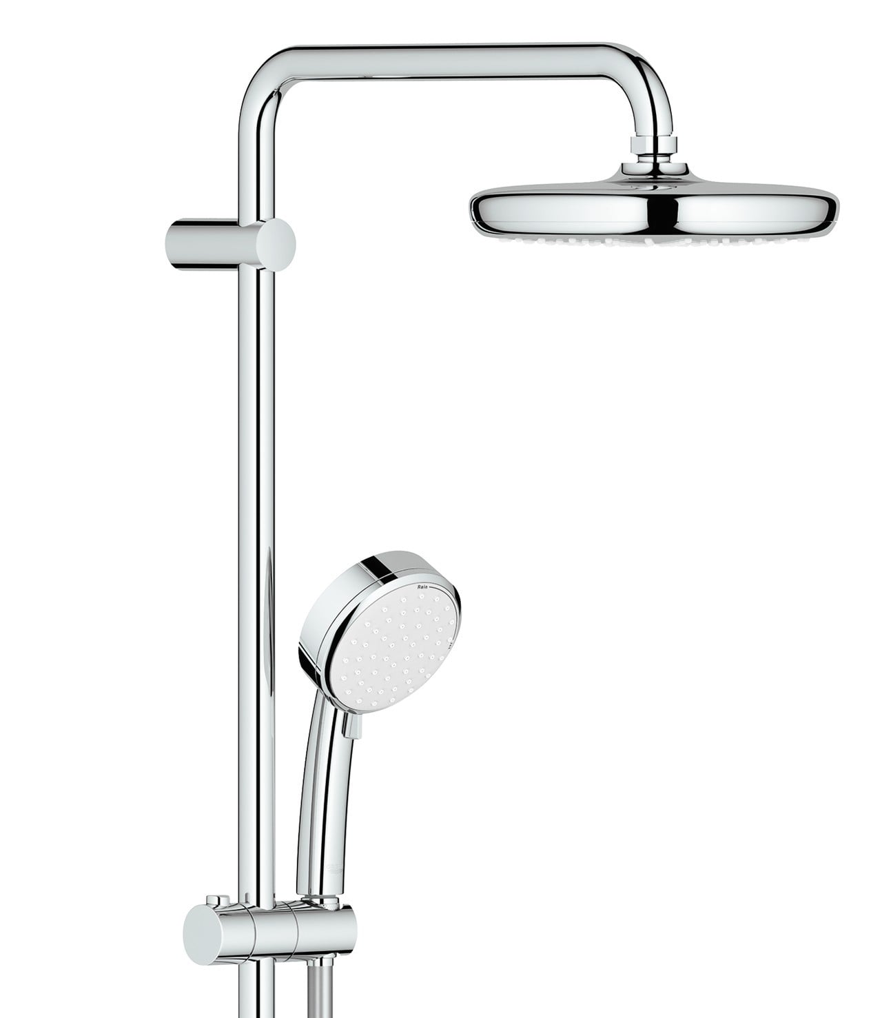 Цвет:    хром Переключатель воды:    аквадиммер на 2 положения Форма:    круглая Дизайн-стиль:    современный Вынос:    390 мм Размер душевой лейки:    210 мм Регулировка угла наклона лейки:    30 ° Регулировка температуры воды:    термостат с предохранительным стопором при 38 °C Регулировка поворота кронштейна:    70 ° Подводка воды:    S-крепление с накидной гайкой 1/2 дюйма Межцентровое расстояние подключения:    150+15 мм Материал корпуса:    латунь Вид струи:    Дождь Комплект поставки:    душ ручной (27571000 GROHE) душевой шланг (28410001 GROHE) Системы и технологии:    душ с шаровым шарниром подходит для проточных водонагревателей форсунки SpeedClean против известковых отложений