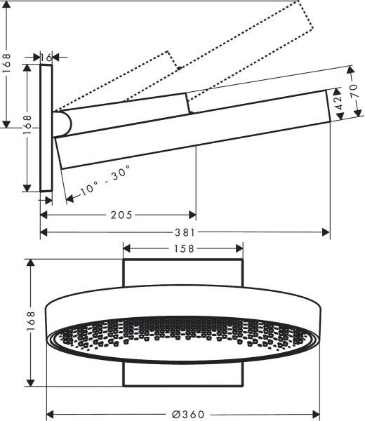 Верхний душ Hansgrohe Rainfinity 360 1jet с настенным держателем (26230000)