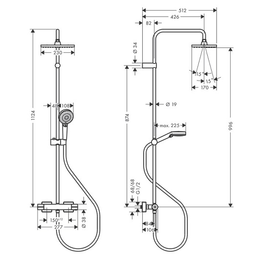 Душевая система HANSGROHE Vernis Shape Showerpipe 230 1jet с термостатом, матовый чёрный (26286670)