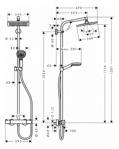 Душевая система Hansgrohe Crometta Е 240 1jet Showerpipe 27271000