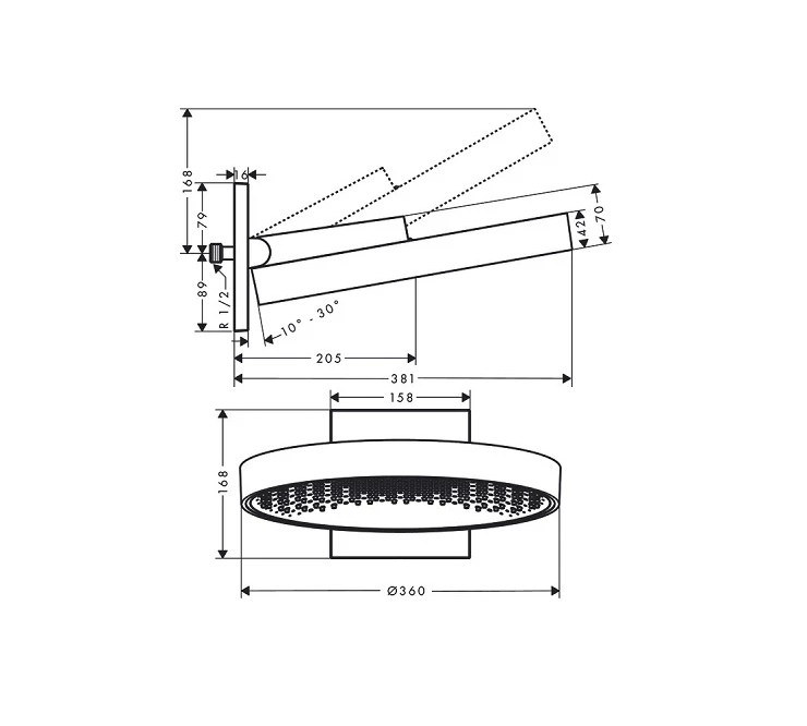 Верхний душ Hansgrohe Rainfinity 360 1jet с настенным держателем (26230000)