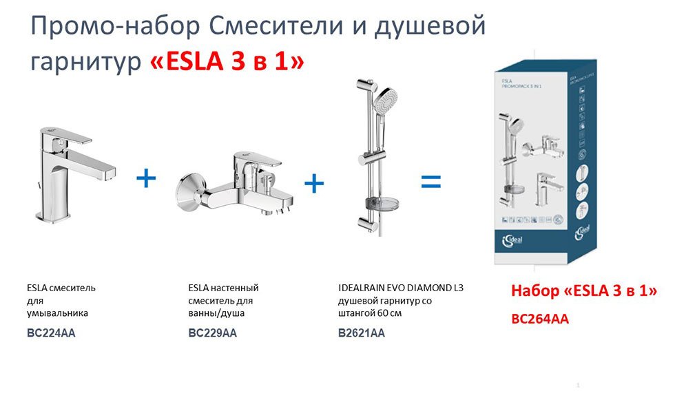 Набор смесителей + душевой гарнитур Ideal Standard Esla BC264AA