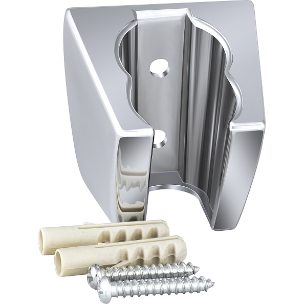 Настенный держатель для душевой лейки СЛАВЕН в ванную комнату, настенный кронштейн. Изготовлен из ударопрочного ABS пластика с хромированием поверхности. Прост в установке и поставляется с креплением на стену.