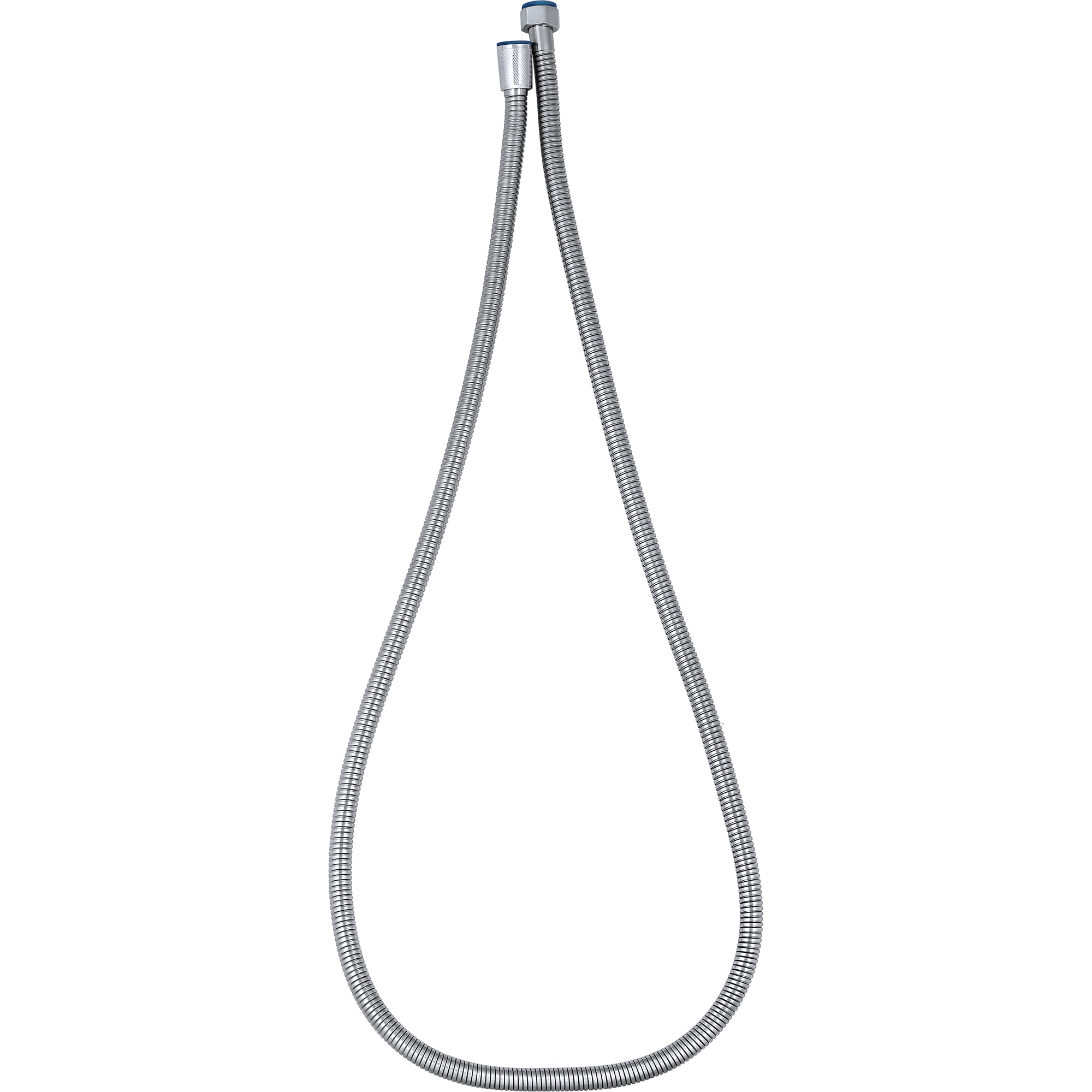 Основа шланга выполнена из EPDM резины, а сверху покрыта стальной обмоткой из нержавеющей стали тип - двойной замок. Обмотка защищает внутреннюю часть от агрессивного действия высоких температур, а также от механических повреждений. На краях расположены гайки для подсоединения к смесителю и лейке диаметром 1/2", длина 150 см.