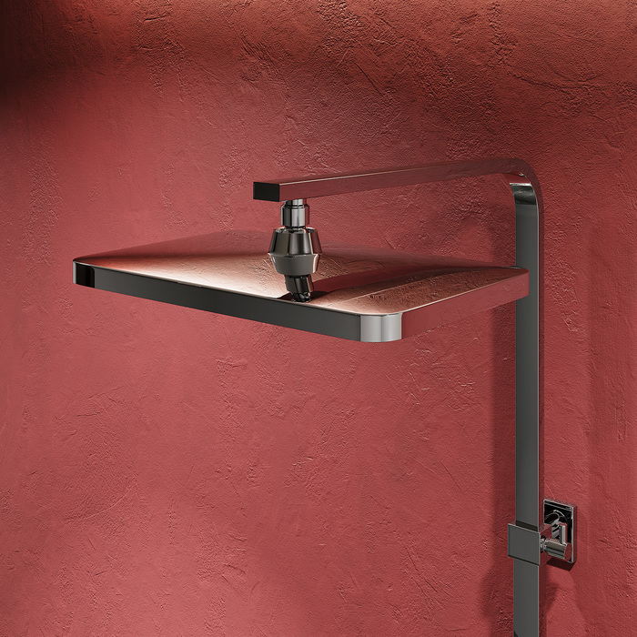 Верхняя прямоугольная лейка также имеет форсунки с тремя микроотверстиями и создает необычайно мягкий объемный поток воды, идеальный для домашнего тропического душа.