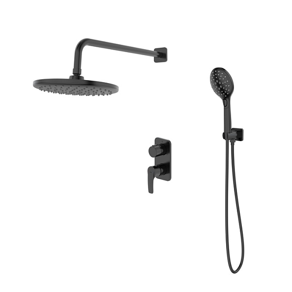 Готовый набор встраиваемой сантехники в стильном матовом черном цвете включает всё необходимое для обустройства комфортной и красивой душевой или ванны. Так выгоднее и удобнее, чем покупать всё по отдельности.