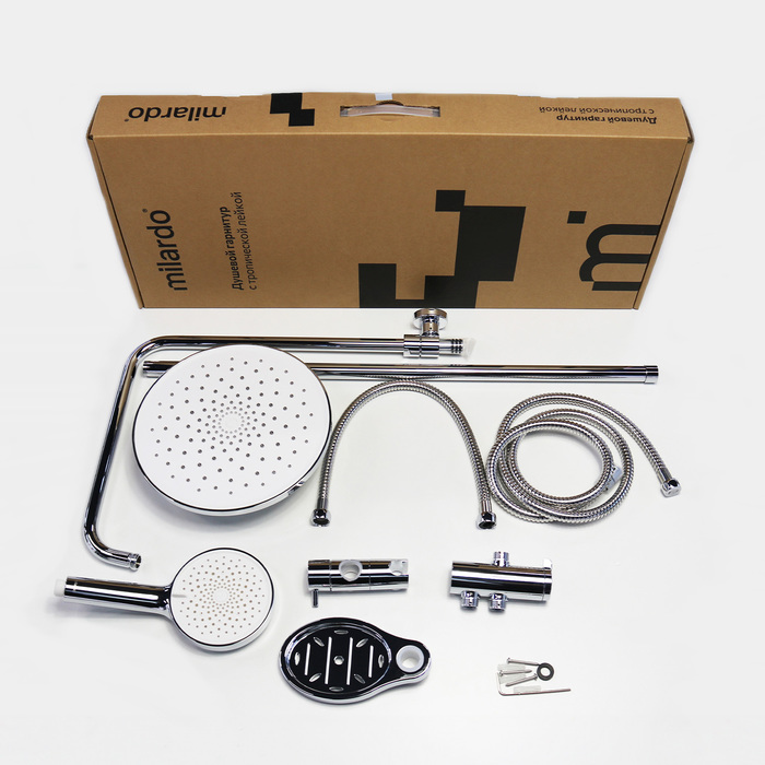 Душевой гарнитур Ideal Spa обладает простой и лаконичной формой. Тропический душ Ideal Spa – это о максимуме комфорта в повседневной рутине. Увеличенный вынос (340 мм) верхней лейки дарит большую свободу движений. Увеличенный (250 мм) диаметр верхней лейки создает расслабляющий эффект, имитирующий пребывание под теплым летним дождем. • Дивертор плавно переключает поток воды между душевыми аксессуарами: верхняя и ручная (3 режима) лейки идут в комплекте. • Хромированное покрытие смесителя и аксессуаров Milardo® оптимальной толщины не подвержено образованию трещин и царапин (при должном уходе). • Гарантия на душевые гарнитуры и душевые аксессуары Milardo® – 1 год. (с) Авторский текст, декабрь 2023 г.