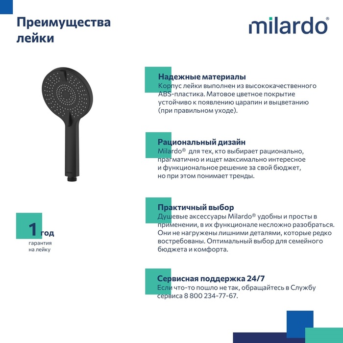 ● Гарантия на ручные лейки Milardo® – 1 год.