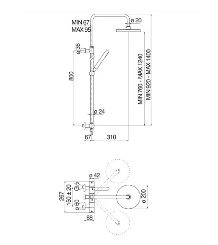 Душевая система Nobili VELIS с термостатом для душа, глянцевый черный (VE125030/50FLP)