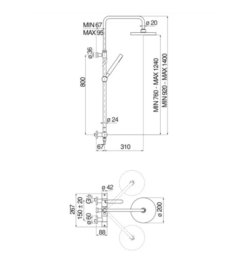 Душевая система Nobili VELIS с термостатом для душа, красное золото (VE125030/50RCP)