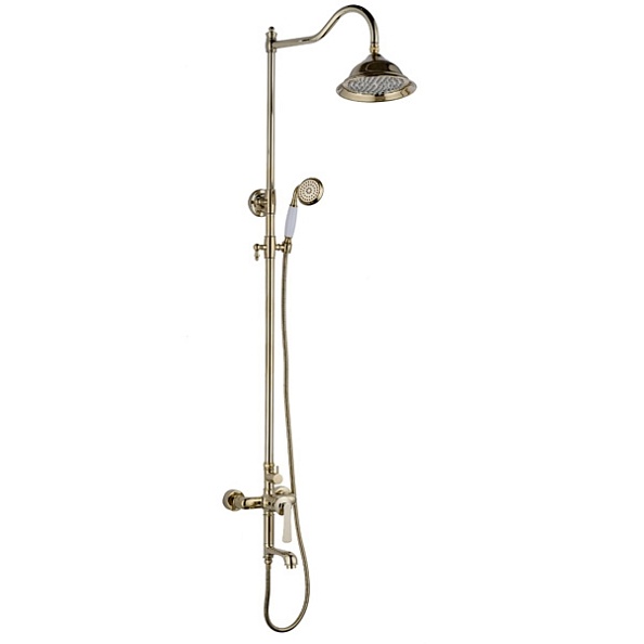 В комплекте 1- режимная душевая лейка, тропический душ, изготовленный из современной прочной пластмассы с никель-хромированным покрытием, душевая штанга, держатель душевой лейки, душевой шланг с латунными гайками 150см, смеситель, индивидуальный пакет, паспорт, гарантийный талон