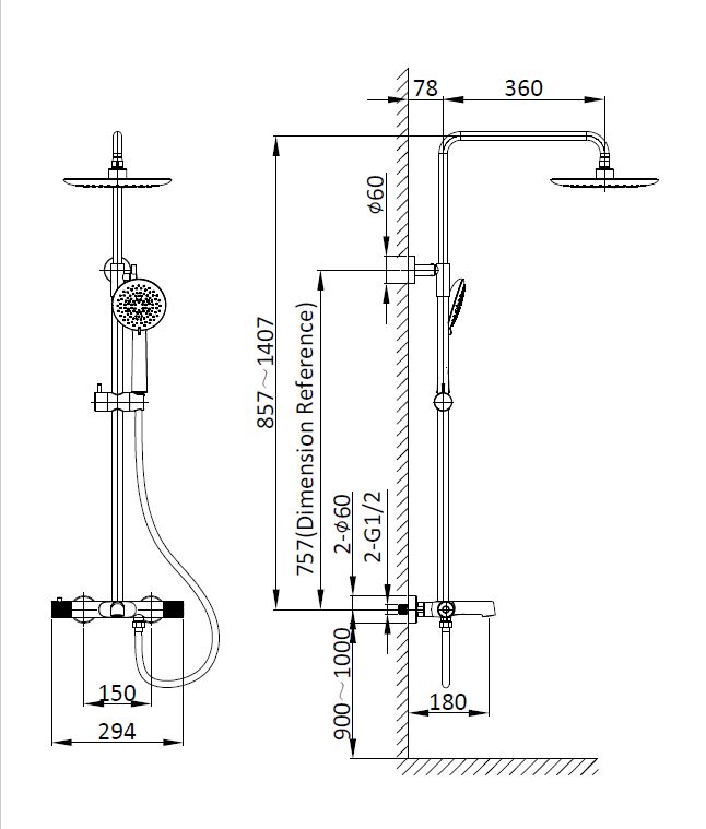 Душевая стойка Vincea Desire VSFS-1D1TMB термостатическая, черный