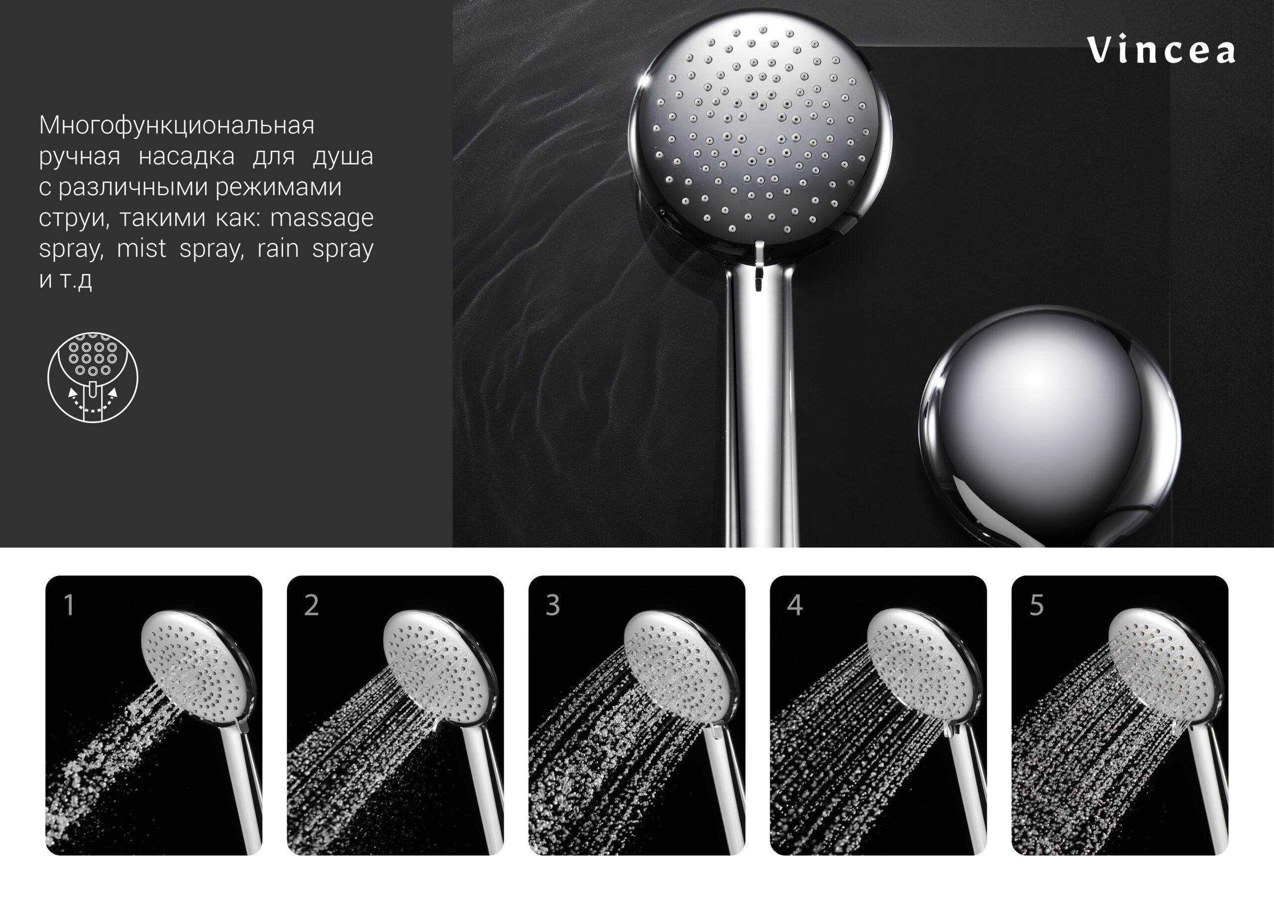 Душевая стойка Vincea Esse VSFS-1E0TMB термостатическая, черный