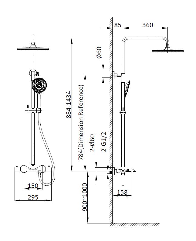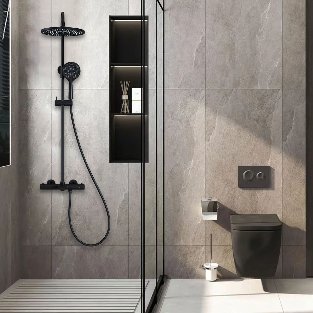 Душевая стойка Vincea Esse VSFS-1E1TMB термостатическая, черный