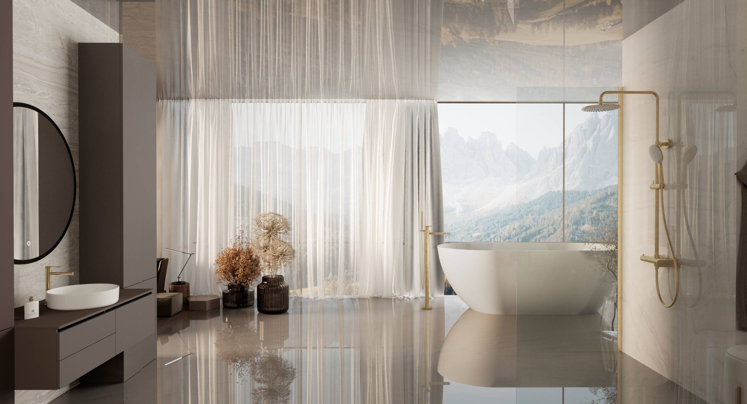 Душевая стойка Vincea Rondo VSFS-1R0BG без излива, брашированное золото