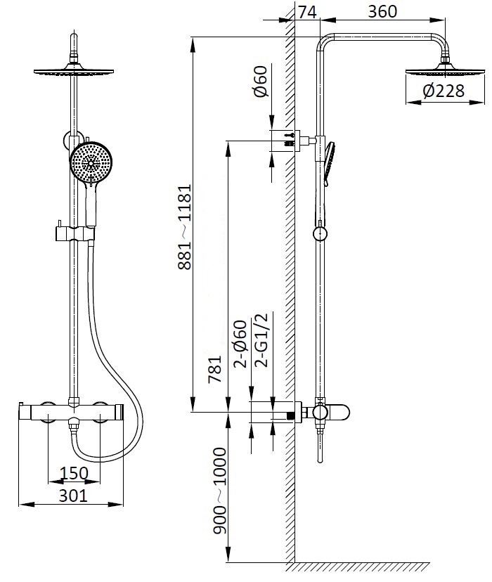 Душевая стойка Vincea Rondo VSFS-1R0CH без излива, хром