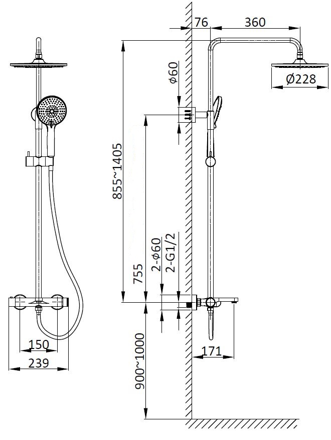 Душевая стойка Vincea Rondo VSFS-1R1CH с изливом, хром