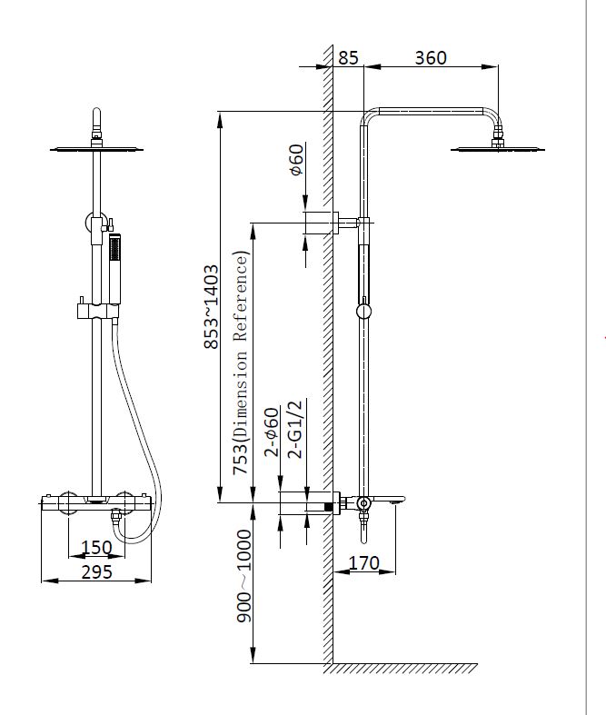 Душевая стойка Vincea Vogue VSFS-1V1TMB термостатическая, черный