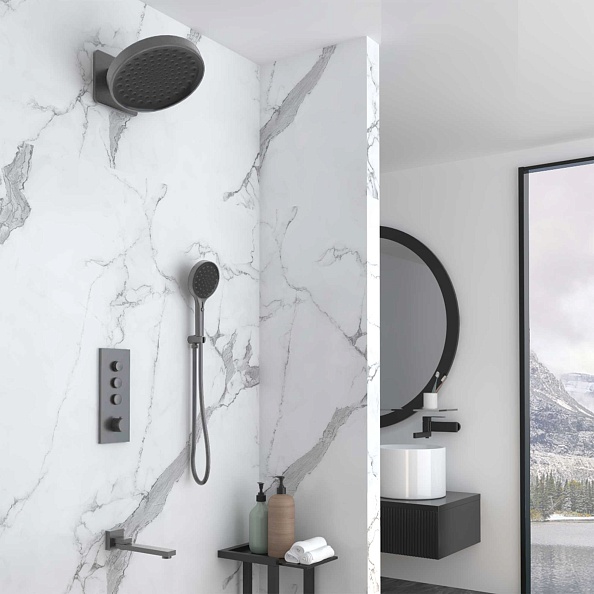 Душевой комплект Vincea Inspire VSFW-433TI3GM встраиваемый, термостат, трехрежимный, вороненая сталь