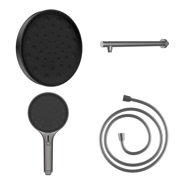 Комплект Vincea Inspire VSHH-3I2AHGM, Верхний душ с держателем, Ручной душ с шлангом, вороненая сталь