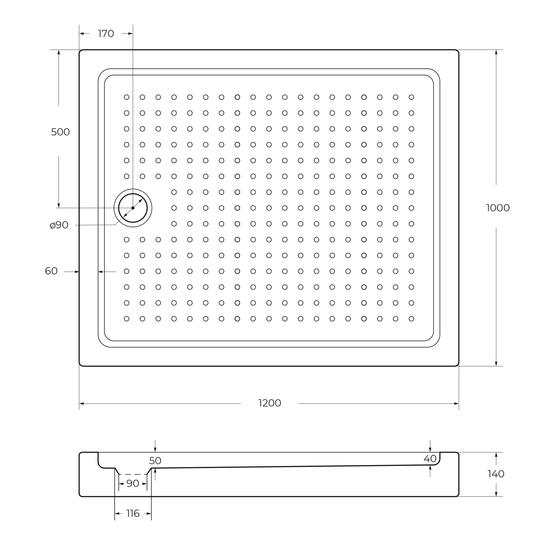 Акриловый поддон Cezares 1200х1000 мм, белый (TRAY-A-AH-120/100-15-W) Акриловые поддоны CEZARES изготовлены из 100% сантехнического акрила – литьевого PMMA, что обеспечивает легкость и простоту ухода, безопасность при приеме душа благодаря нескользкой поверхности, стойкость к царапинам и окрашивающим жидкостям, а при необходимости – идеальную ремонтопригодность. Усиленное дно поддона и металлический каркас из нержавеющей стали с регулируемыми во высоте ножками позволяют выдерживать нагрузку свыше 250 кг. Сочетание используемых материалов и современных технологий производства гарантирует сохранение внешнего вида и функциональности поддонов CEZARES долгие годы. Сифон поддона обеспечивает скорость стока воды 30 л/мин.