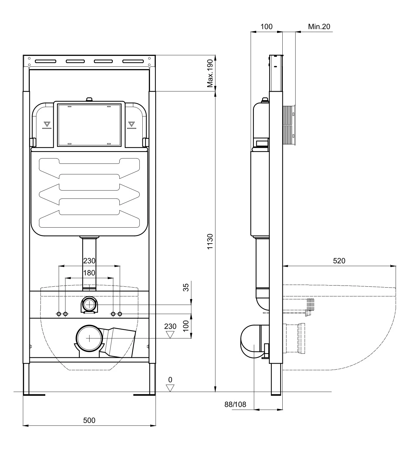 INS-0000010 Aquatek Easy Fix 50 Монтаж рама для подв унитаза1130*500*100+звукоизоляционная прокладка