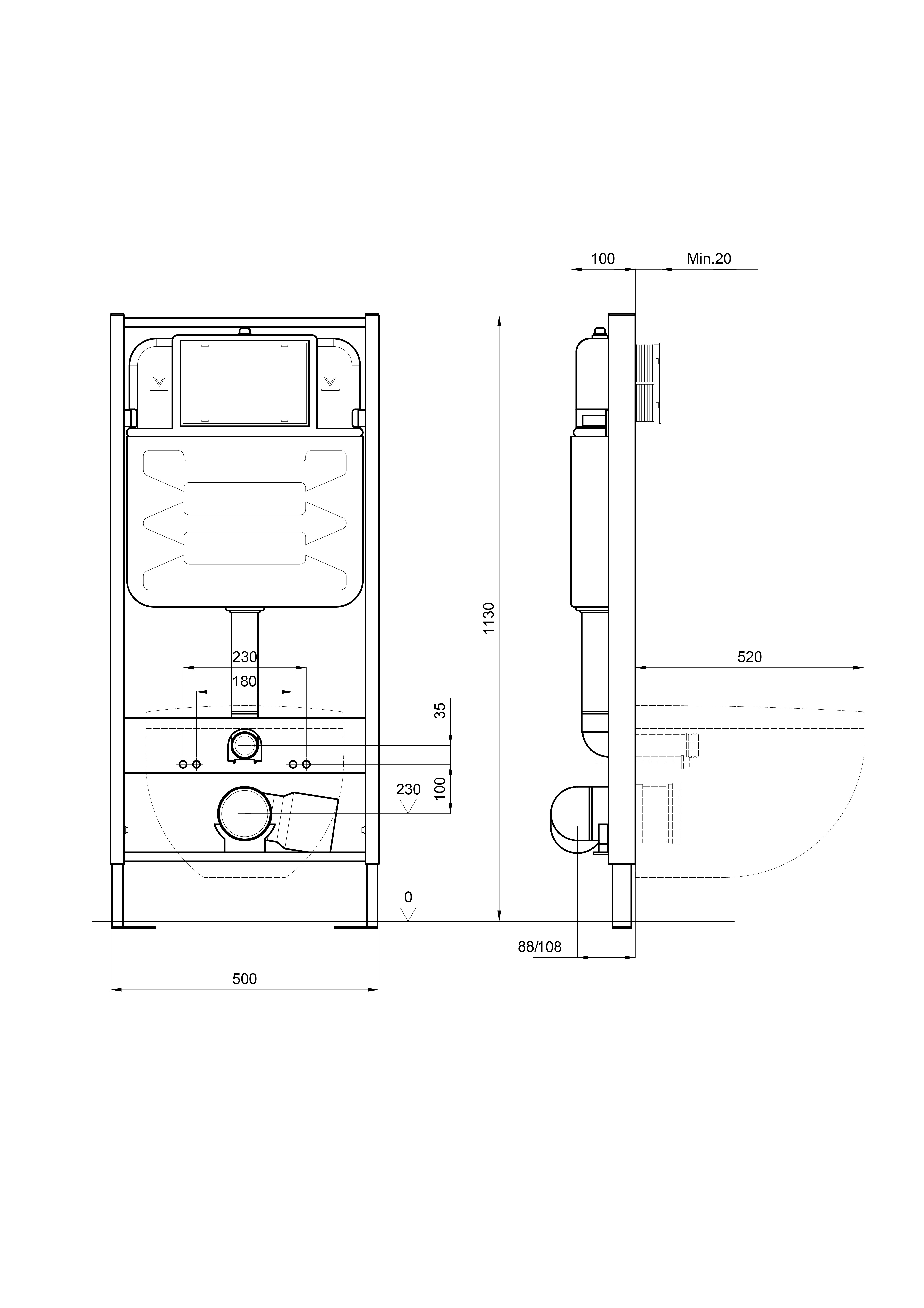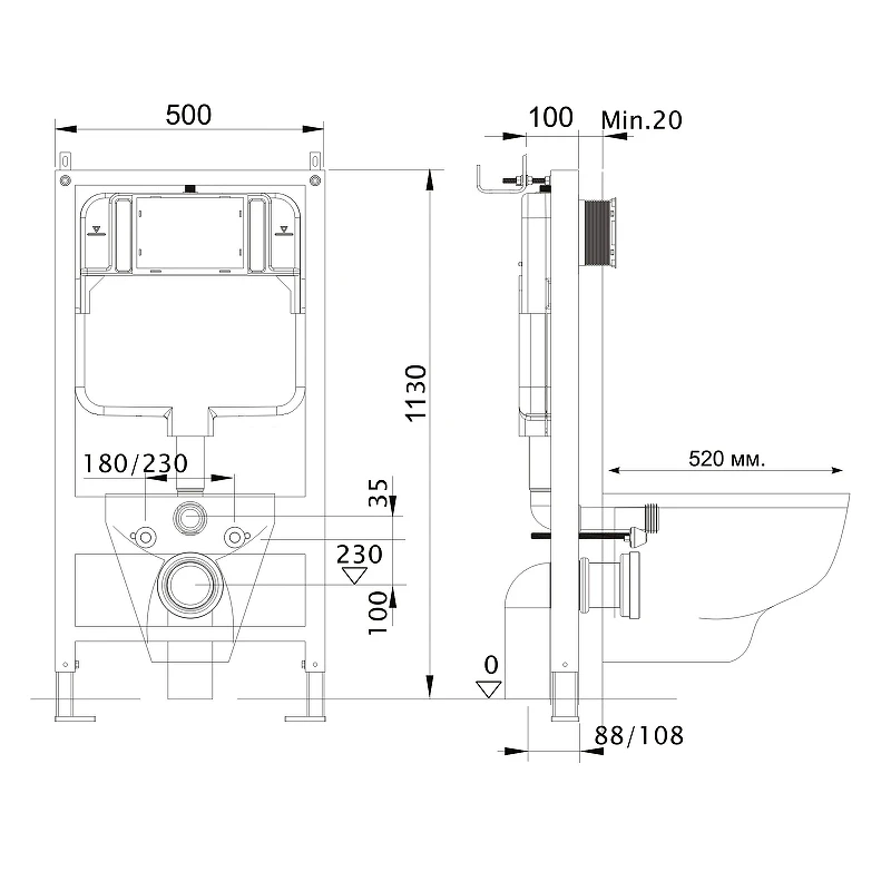 INS-0000012 Aquatek Standart 50 Монтаж рама для подв унитаза1130*500*100+звукоизоляционная прокладка