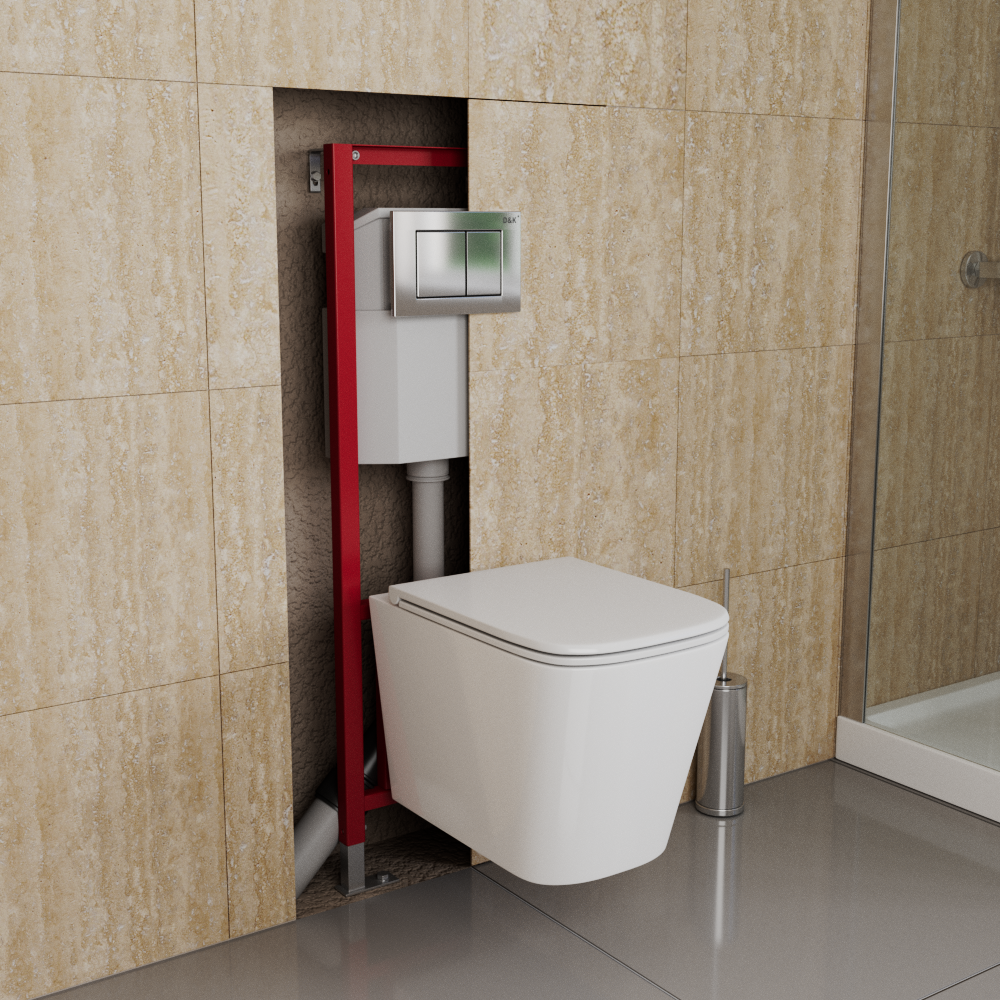 Инсталляция D&K - это система креплений и приспособлений, позволяющих произвести установку подвесного унитаза. Крепится она к стене или за специальным декоративным коробом. На раму устанавливается чаша подвесного унитаза, сливной бачок, различные приспособления и механизмы, вентили и краны, предохранительные клапаны. Также система инсталляции позволяет подключать трубы для подачи и отведения воды. Особенности системы инсталляции D&K:
