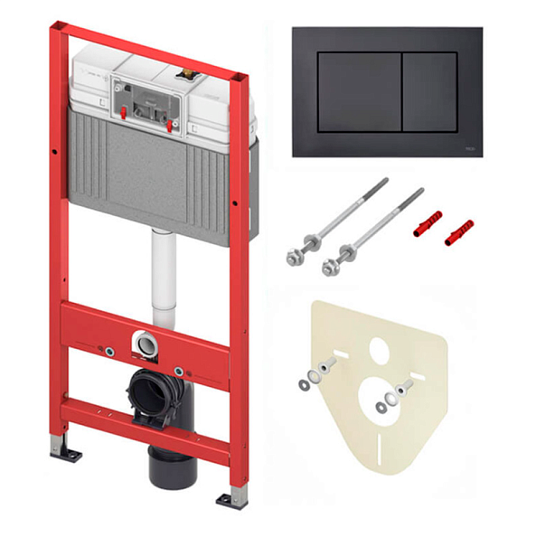 Инсталляция для подвесного унитаза TECE Base с панелью смыва TECEnow, черный матовый (4 в 1) (9400414)