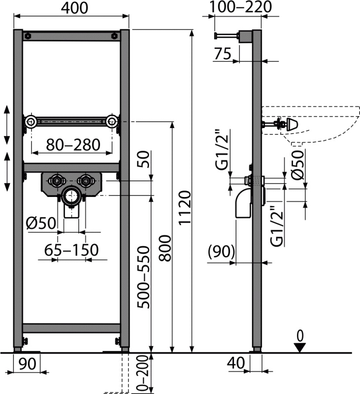 Инсталляция для раковины AlcaPlast (A104/1120)