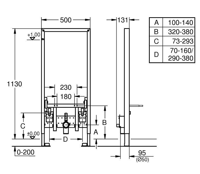 Система инсталляции для биде Grohe Rapid SL (1,13 м) для монтажа перед стеной (38553001)