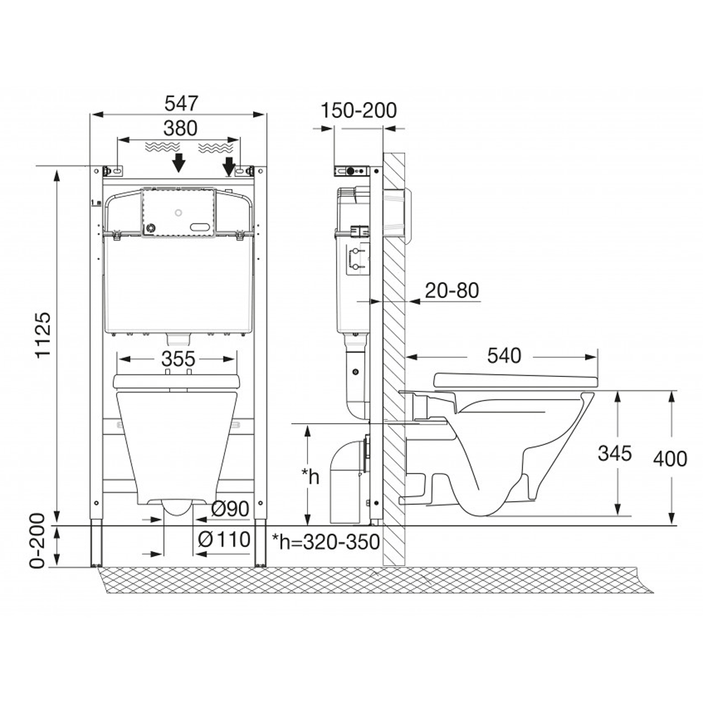 Расстояние между болтами для монтажа унитаза