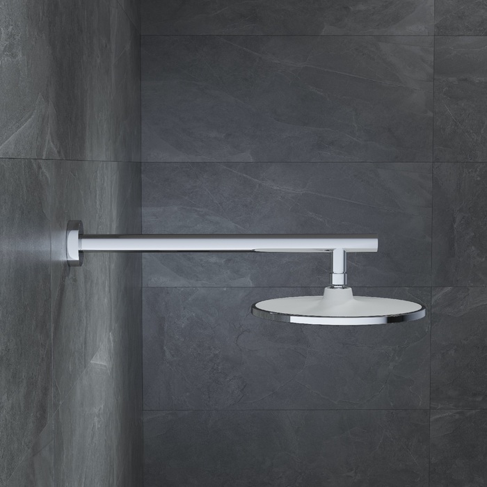 Хромированный Г-образный настенный кронштейн для верхней душевой лейки. Круглое сечение, длина 400 мм. Совместим с любыми хромированными верхними лейками IDDIS® с подключением G 1/2, а также с лейками других производителей.