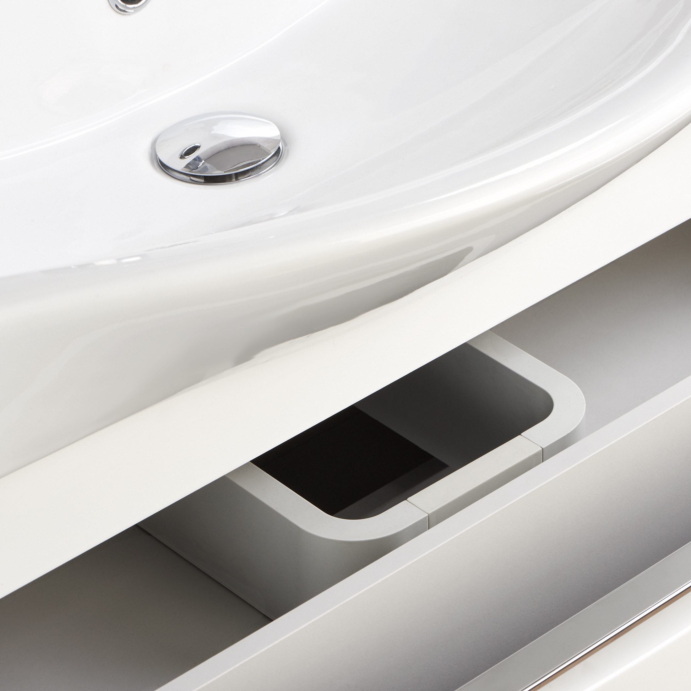 Тумба под раковину Капри 60 от AQUATON в цвете белый глянец отражает современные тенденции в дизайне мебели для ванных комнат: минимализм в чистом виде с простыми и понятными формами, отсутствие лишних деталей, удобные профильные ручки, интегрированные в фасад. Корпус и фасады выполнены из влагостойкой ЛДСП и покрыты глянцевой краской. Несмотря на компактные размеры, тумба предлагает удобную систему хранения, что особенно актуально для небольших ванных комнат и санузлов. Модель оборудована двумя вместительными ящиками. Комфорт и удобство при использовании гарантируют направляющие с доводчиками и интегрированная система плавного закрывания. В качестве дополнения к подвесной тумбе предлагается дополнительный комод на ножках, который может быть установлен как непосредственно под тумбой, так и со смещением влево или вправо.