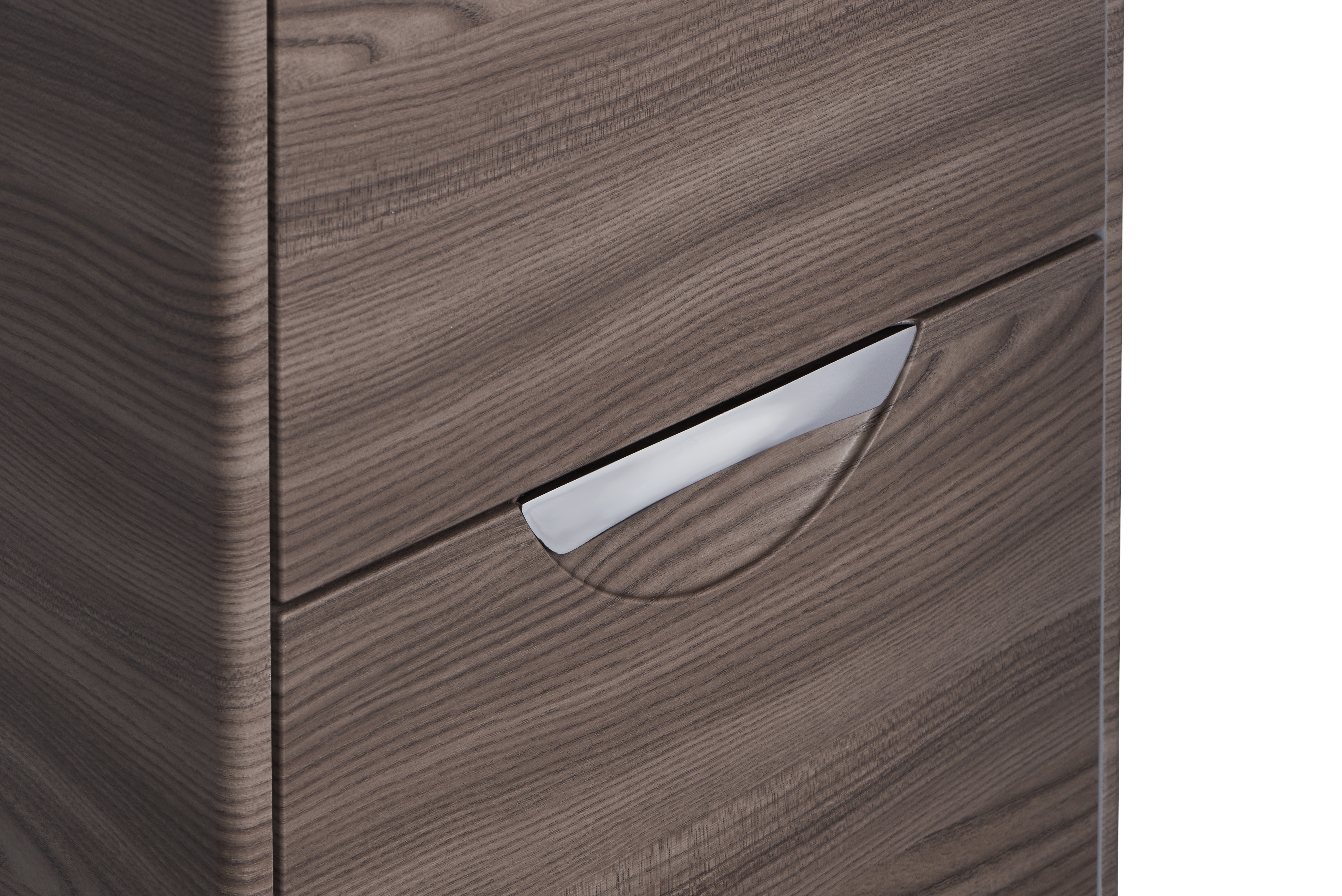 Компактная тумба Сильва 50 от AQUATON в эффектной отделке дуб макиато - это оптимальное сочетание практичной функциональности, утонченной красоты древесных мотивов и современного дизайна. Фасады и боковые стенки тумбы выполнены из МДФ в пленке, а корпус - из влагостойкой ЛДСП. Два вместительных ящика с направляющими плавного выдвижения комфортны в использовании и позволяют компактно разместить все необходимые принадлежности. Изящная удобная врезная ручка гармонично дополняет дизайн тумбы. Укомплектованная прямоугольной керамической раковиной Нео от Santek эта модель прекрасно впишется в скандинавский стиль, лофтовую эстетику и хай-тек. Помимо стандартного подключения водоснабжения и канализации из стены, предусмотрена возможность нижнего подключения.