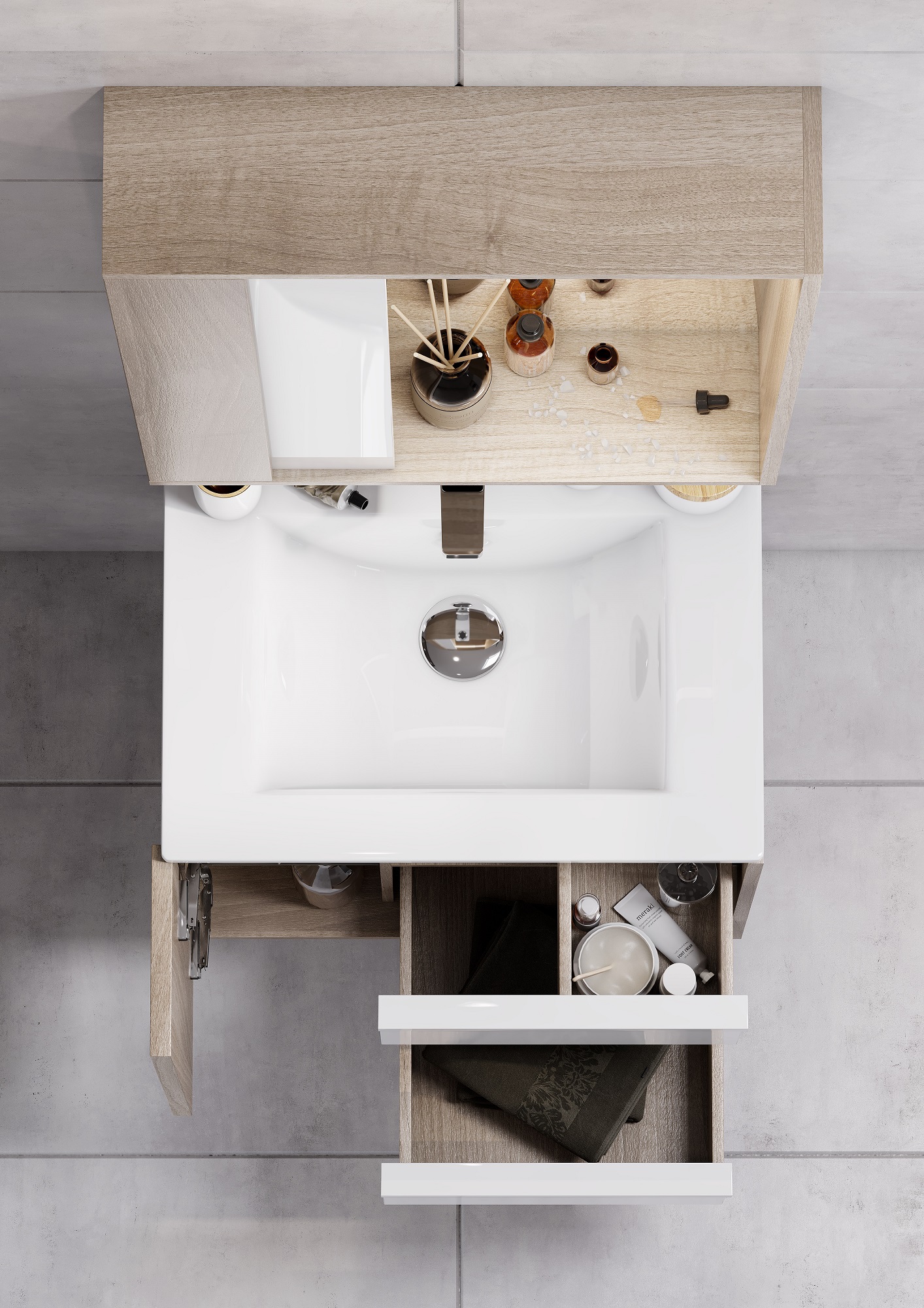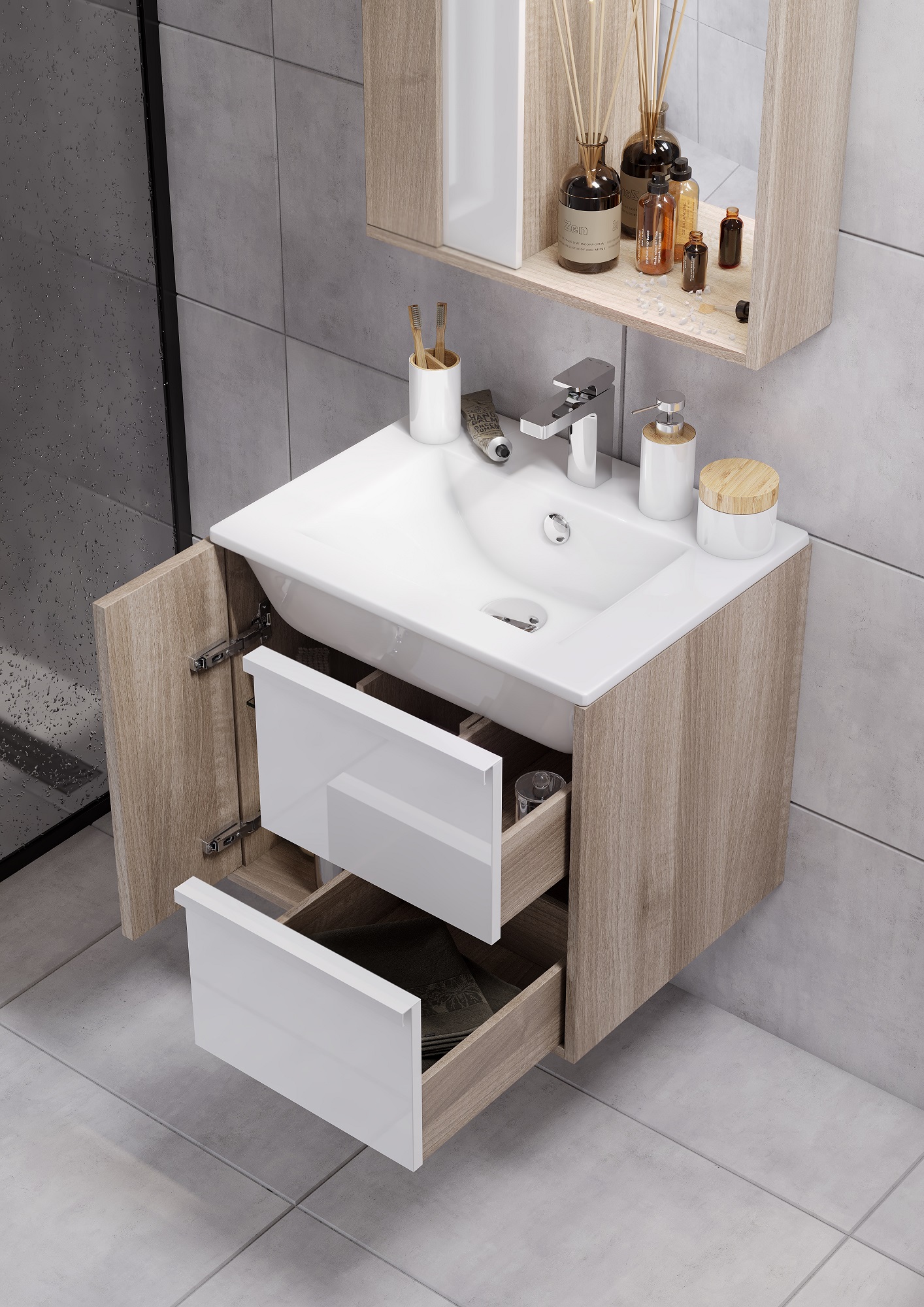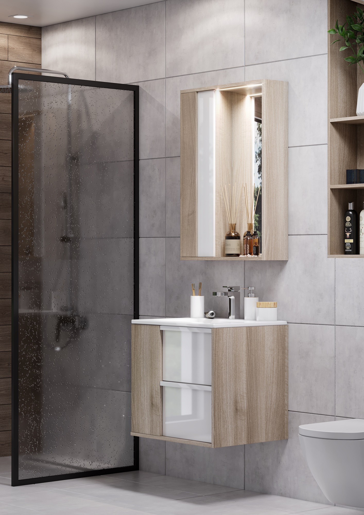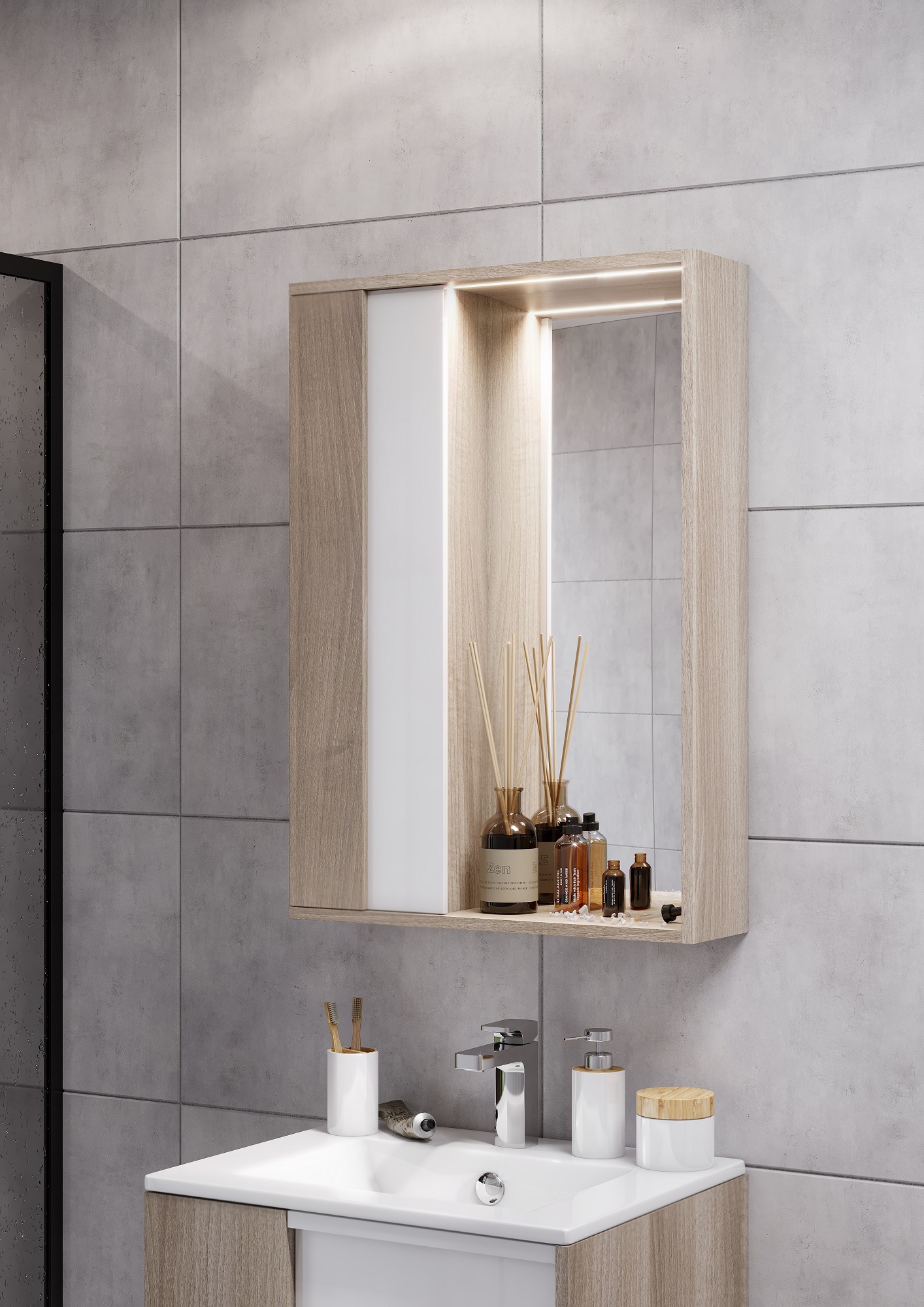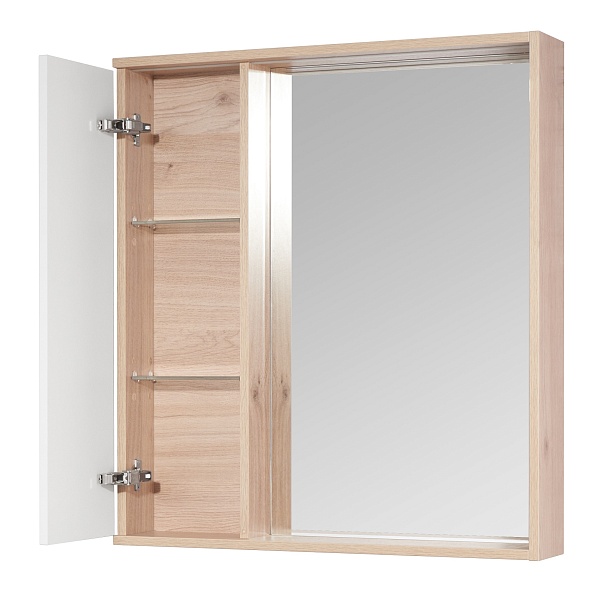 Зеркальный шкаф Бостон 75 от AQUATON подойдет всем, кто ценит стильный дизайн и практичность. Корпус выполнен из влагостойкой ЛДСП в элегантной декоративной отделке "дуб эврика". Комбинированный фасад, расположенный слева, окрашен в белоснежный глянцевый цвет и включает дополнительную накладку, выполненную в цвете корпуса. Петли снабжены доводчиками, что обеспечивает плавное и почти бесшумное закрывание дверцы. За фасадом находятся две регулируемые по высоте стеклянные полки. В верхнюю панель зеркального шкафа интегрирована LED-подсветка, обеспечивающая равномерное и красивое освещение зеркала и внутреннего отделения.