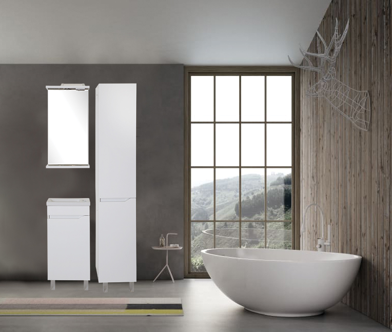 Пенал изготовлен в современном стиле с двумя дверками, с интегрированными в фасад ручками. В верхней части пенала размещены 2 полочки, в нижней части пенала 1 полка.