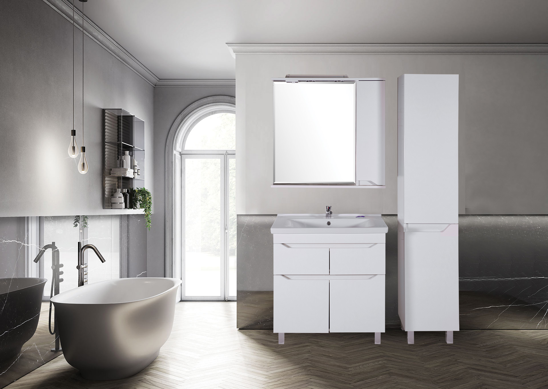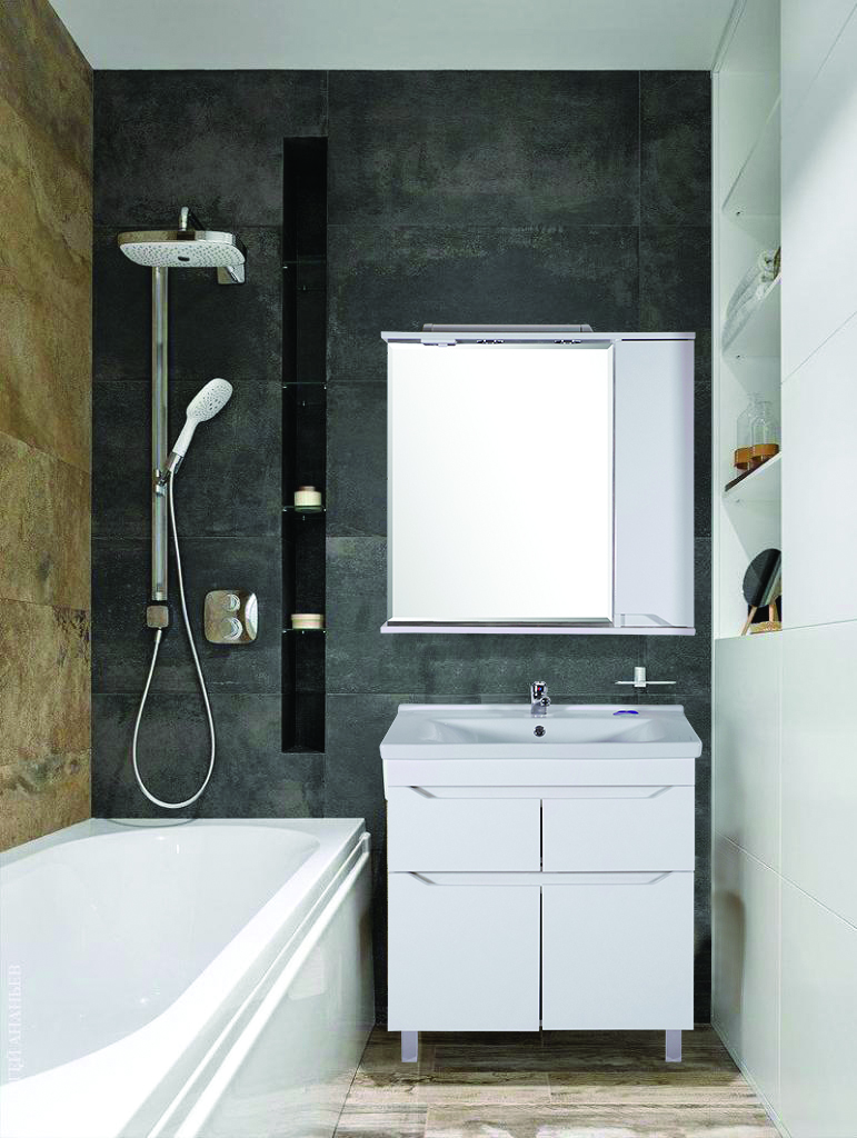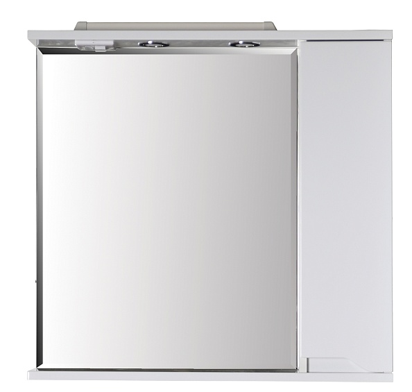 Зеркальное полотно влагостойкое с розеткой и выключателем, ручка шкафчика интегрирована в фасад дверки