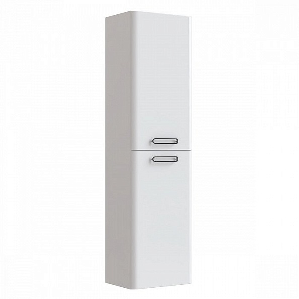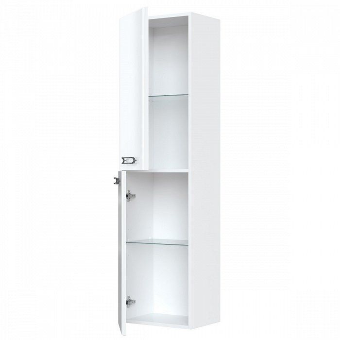 Пенал для ванной комнаты, подвесной, белый. Ширина 40 см. Универсальная ориентация, МДФ, две дверцы с интегрированными сатиновыми ручками, стеклянные полки с фиксаторами