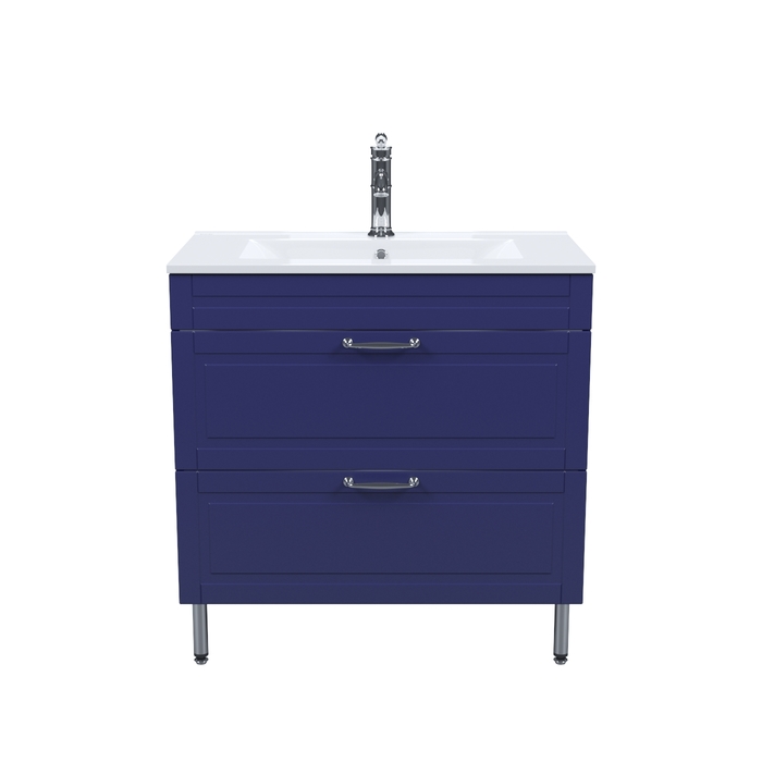 Напольная тумба Oxford в красивом синем оттенке – модное сочетание классического стиля и стиля ретро. Она органично впишется в интерьер благодаря элегантному фрезерованному фасаду и узнаваемому дизайну. В комплекте плоский эргономичный умывальник.