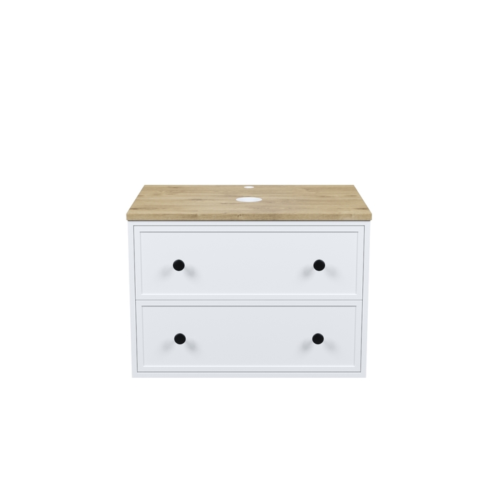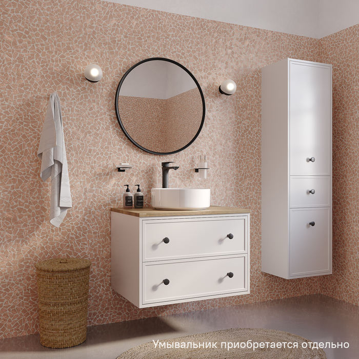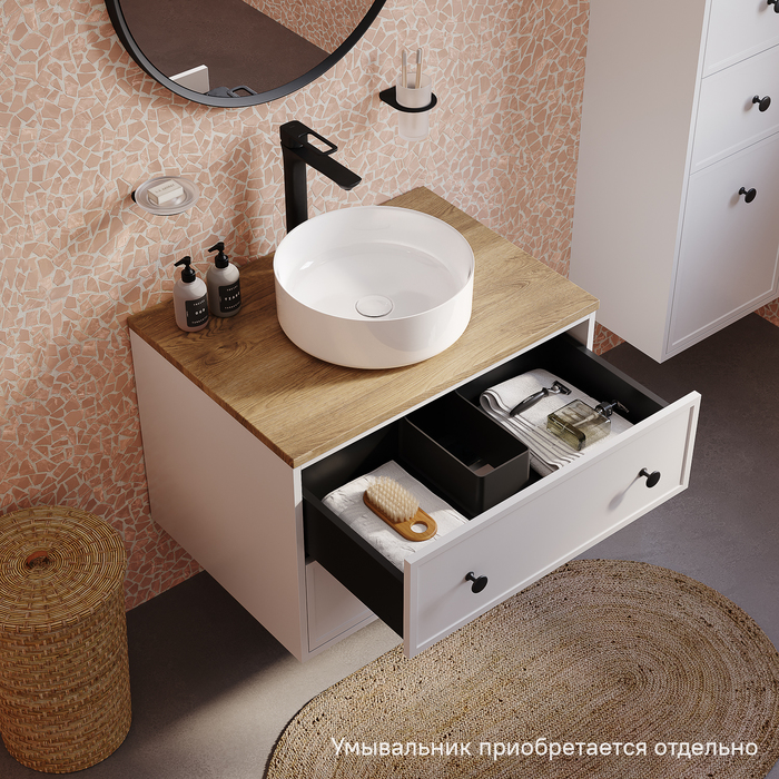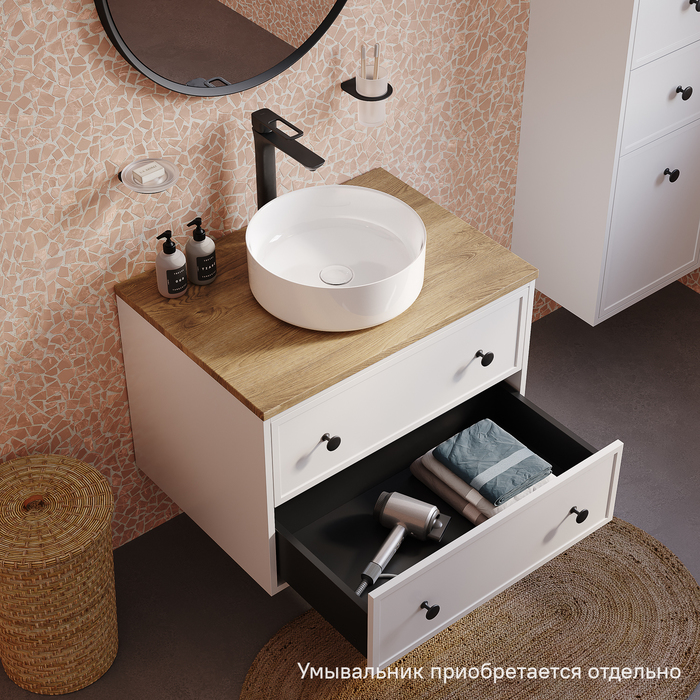 Компактная подвесная тумба Torr классического молочно-белого цвета со столешницей из МДФ в оттенке дуба верона. Сочетает в себе узнаваемый стиль и практичность популярного скандинавского дизайна. Ее четкие формы, теплый цвет дерева, фасады с декоративной филенкой, круглые ручки смотрятся гармонично и впишутся в любой современный интерьер. Подойдет любой накладной умывальник, покупается отдельно. • Два просторных выдвижных ящика закрываются плавно и бесшумно благодаря высококачественным скрытым направляющим с доводчиками Hettich. Внутри ящики графитового цвета – стильно и практично. • Многослойное покрытие матовой эмалью, предназначенной для использования в помещениях с высокой влажностью, позволит сохранить первоначальный вид мебели надолго (при должном уходе). • Надежная фурнитура Hettich рассчитана на 30 000 открываний – это более 10 лет исправной работы. Гарантия на мебель IDDIS® – 3 года. (с) Авторский текст, декабрь 2023 г.
