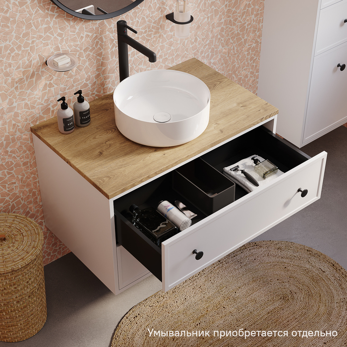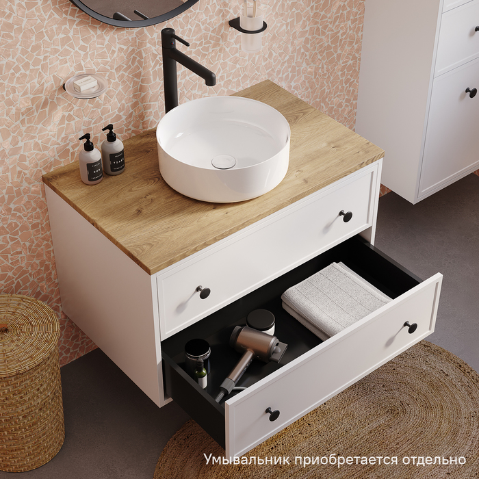 Тумба подвесная со столешницей МДФ, дуб верона 80 см IDDIS Torr белый матовый (TOR80WVi95K)