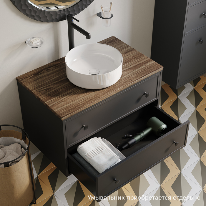 Тумба подвесная со столешницей МДФ, макадамия орех 80 см IDDIS Torr темно-серый (TOR80DMi95K)