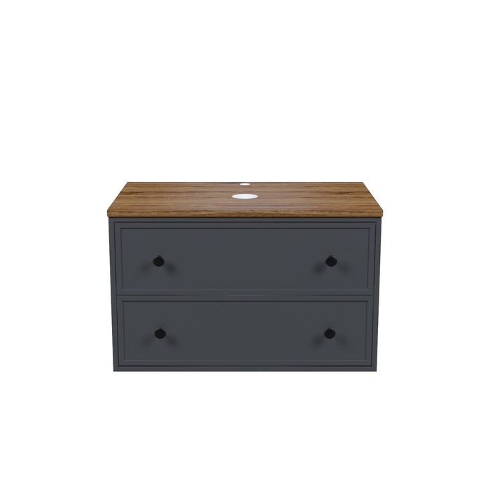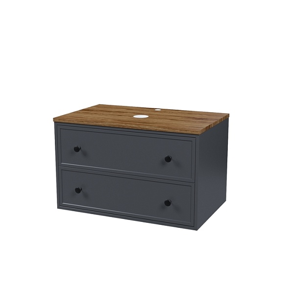 Вместительная подвесная тумба Torr трендового темно-серого цвета со столешницей из МДФ в оттенке ореха макадамия. Сочетает в себе узнаваемый стиль и практичность популярного скандинавского дизайна. Ее четкие формы, теплый цвет дерева, фасады с декоративной филенкой, круглые ручки смотрятся гармонично и впишутся в любой современный интерьер. Подойдет любой накладной умывальник, покупается отдельно.