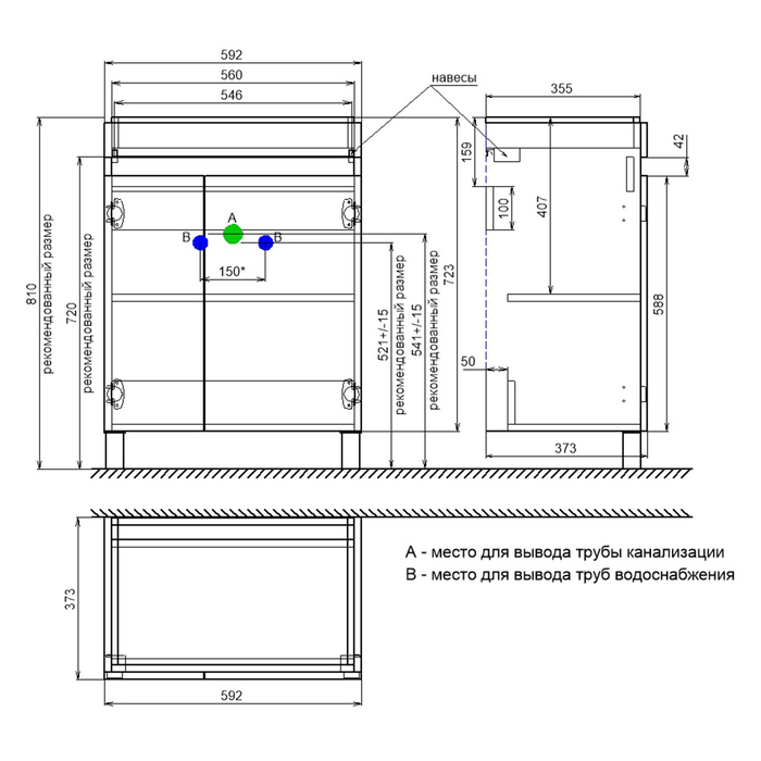 • В комплекте белые пластиковые ножки 100 мм и сифон, за счет чего тумба полностью готова к установке.