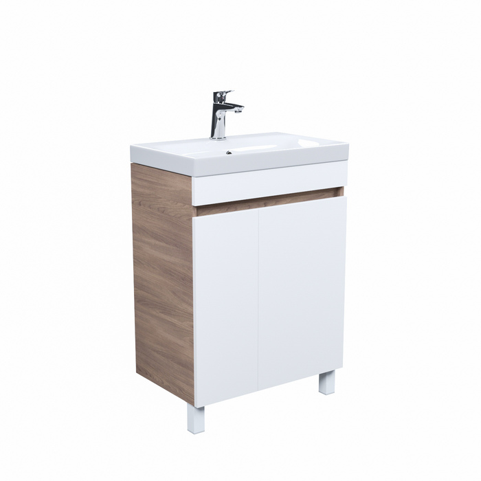 Тумба с умывальником IDDIS напольная с дверцами 60 см белая/под дерево Zodiac (ZOD6ADFi95K)