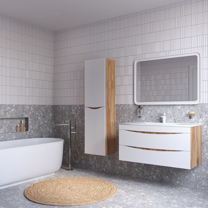 • Подвесная конструкция тумбы делает ее воздушной и упрощает процесс уборки в ванной.
